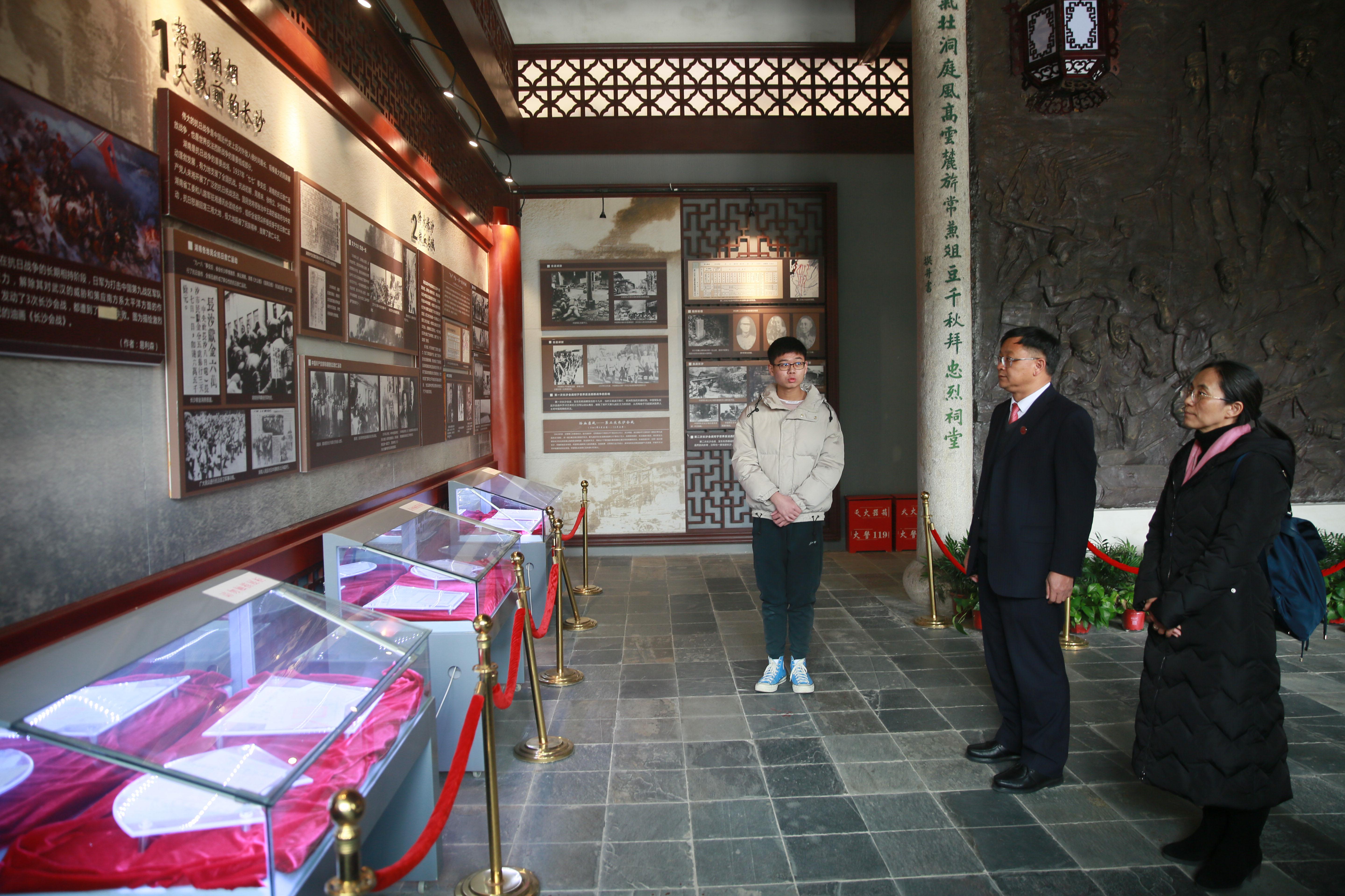 会后,湖南师范大学党委宣传部、校长办公室有关同志陪同毕校长一行考察湖南师大校内的麓山忠烈祠。