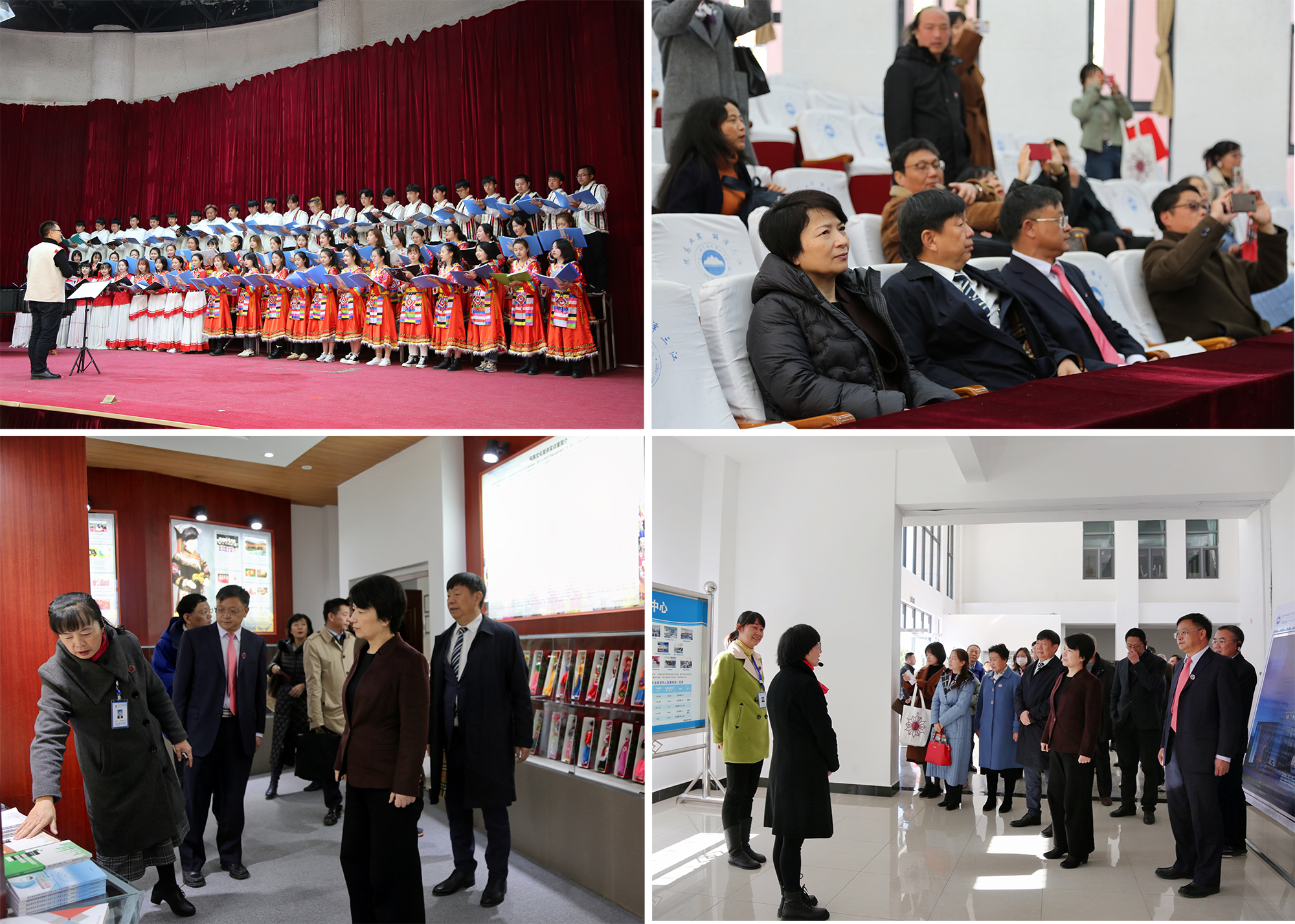 座谈会结束后,在毕天云的陪同下与会人员参观了我校学前教育实训中心、民族文化宣讲室、滇西北民族艺术传承基地,观赏了师生合唱经典红歌——《北京有个金太阳》。
