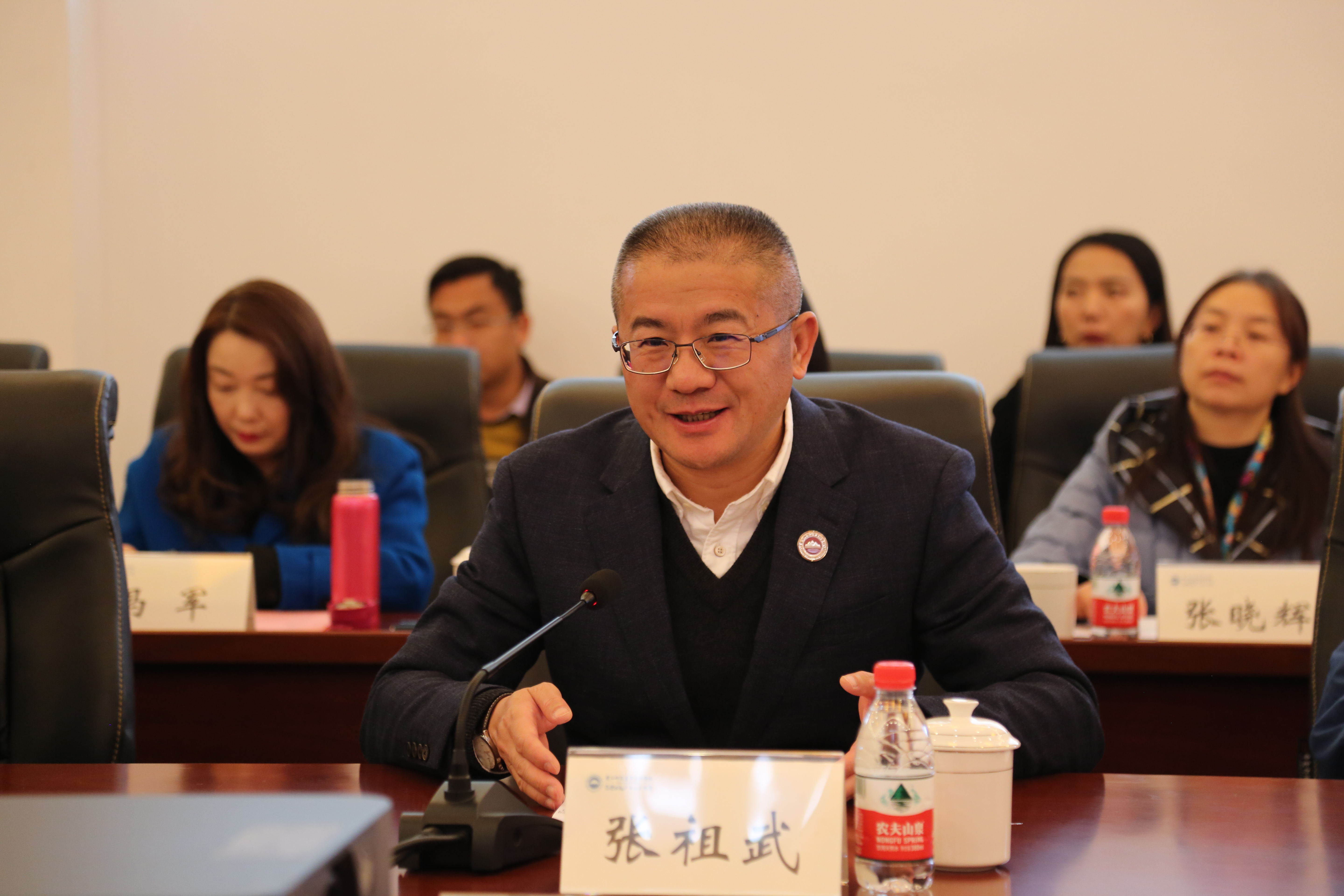 张祖武致欢迎辞,他代表学校向教育部,江苏省、湖南省、云南省教育厅,华东师范大学、南京晓庄学院、长沙师范学院、云南师范大学以及丽江市委市政府等领导、老师莅临学校指导工作表示最热烈的欢迎!对大家长期以来对我校的关心关爱、全力支持和倾心付出表示最衷心的感谢!