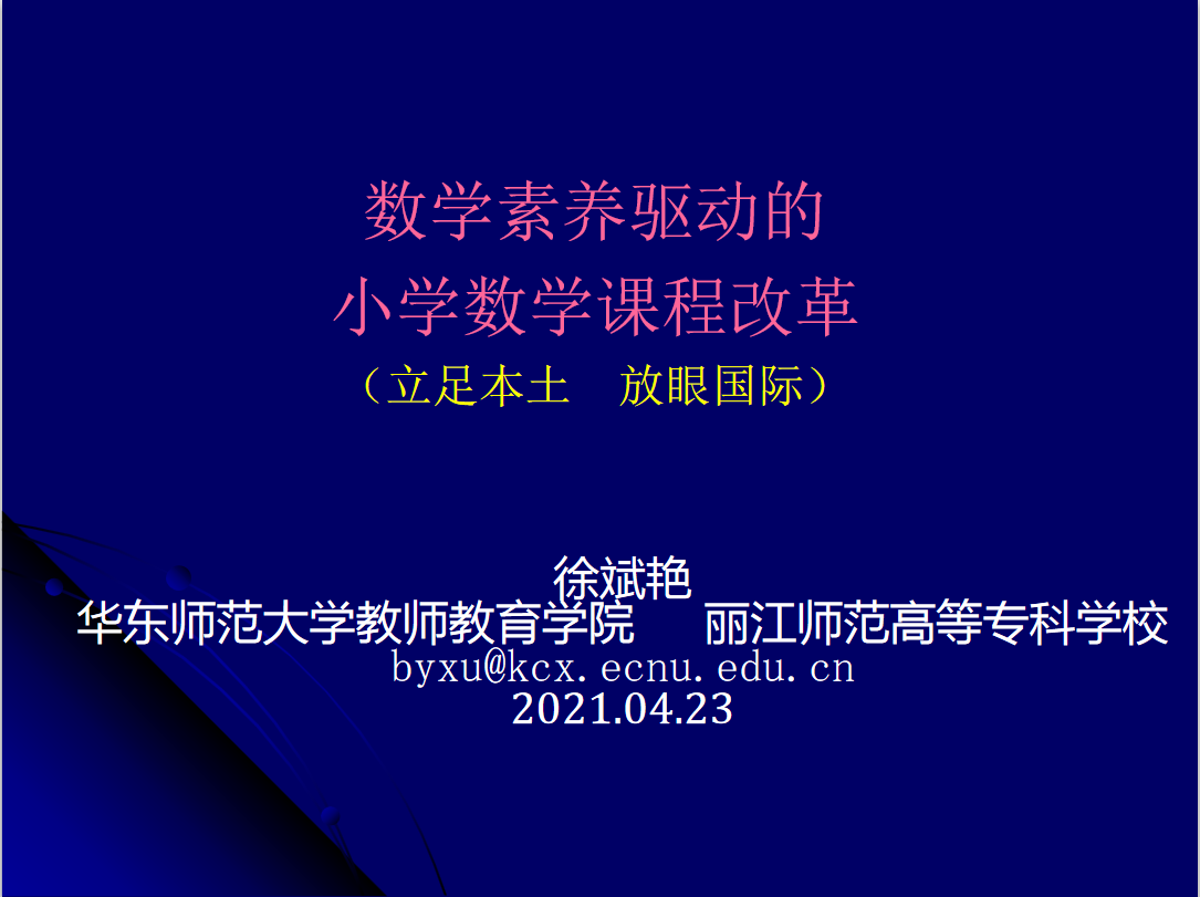 4月23日上午9点40分在南实验楼404会议室,徐斌艳教授为我校全体数学教师作了题为《数学素养驱动的小学数学课程改革(立足本土 放眼国际)》的学术讲座。就国际背景下基于核心素养驱动实施小学数学课程改革与大家作了分享与交流。会后老师积极反馈说,通过聆听讲座并与徐斌艳教授交流,在如何开展数学课程改革教学方面有很大的启发和收获,大家表示将在今后的教学工作中引导学生会用数学的眼光观察现实世界、会用数学的思维思考现实世界、会用数学的语言表达现实世界。
